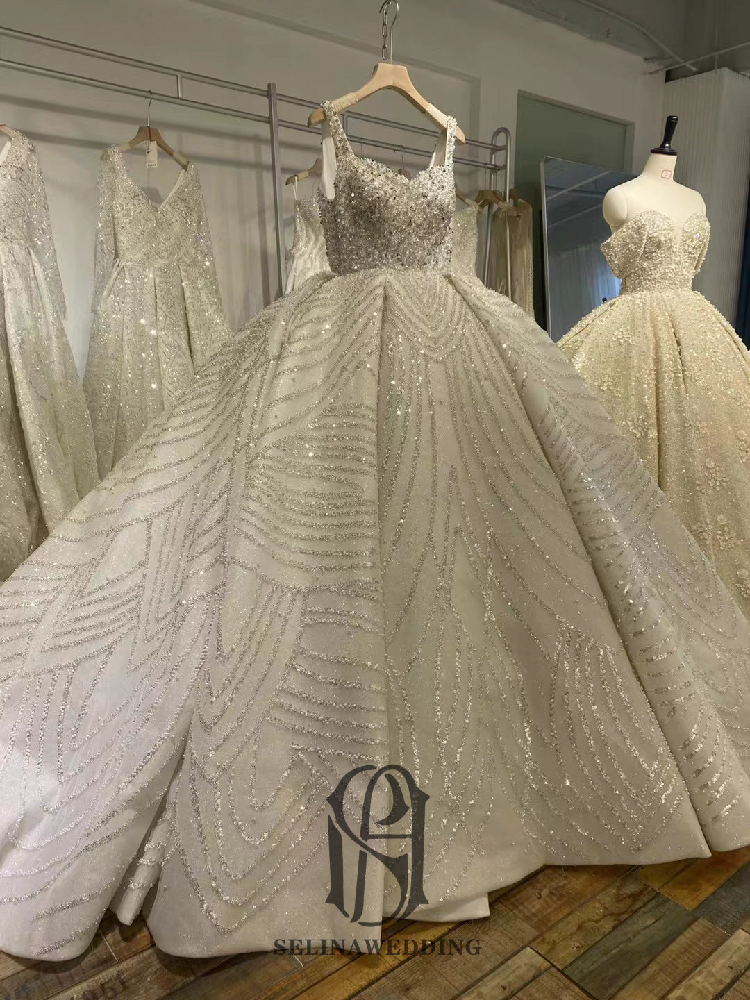 2023 Square Neck Sleevesless Shining Sequin Straps Wedding Dress selinabrcr2023517