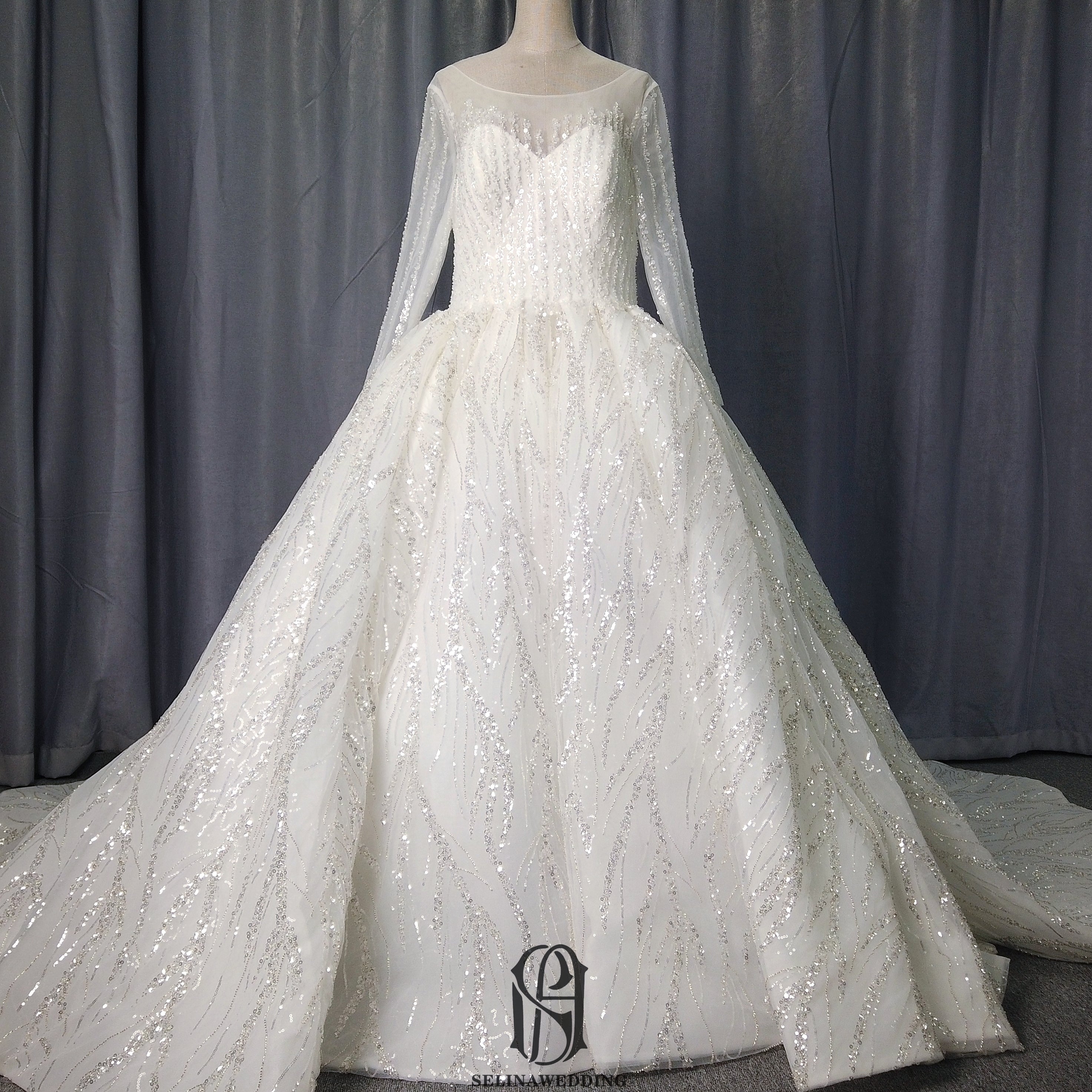 Long Illusion Sleeves Sweetheart Neck Wedding Dress Bridal Wedding Gown selina2022082606