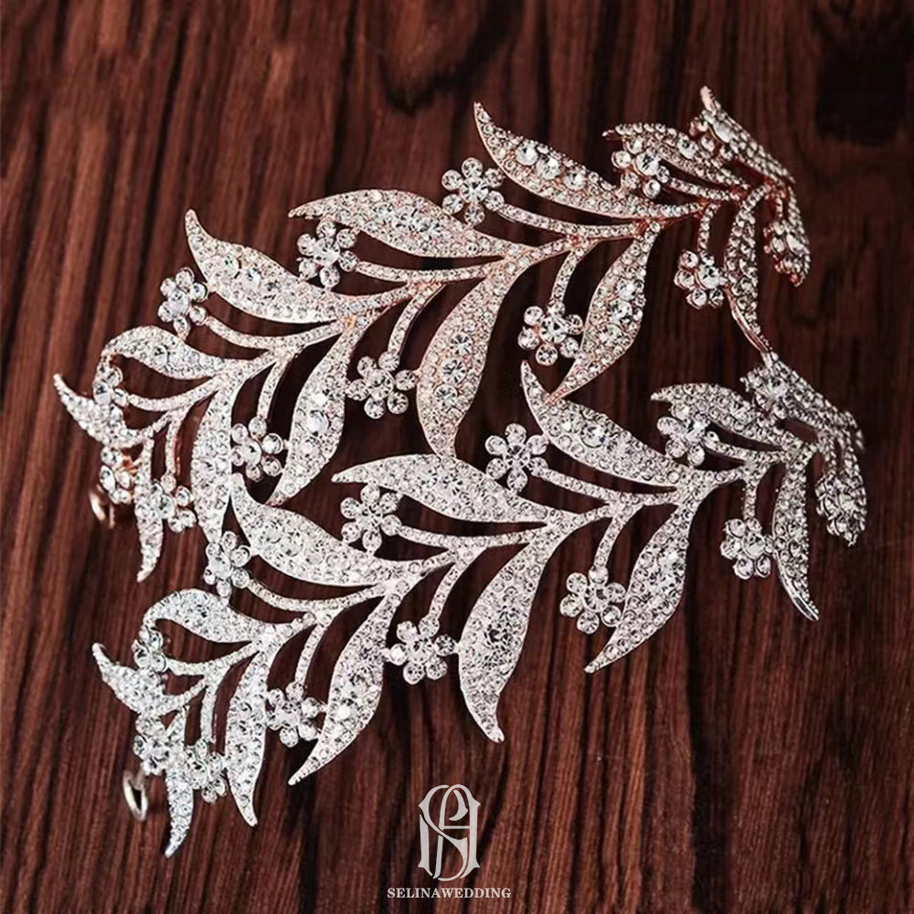 Material: Carefully crafted by hand, this light-catching piece is resplendent with silver-tone leaves and shimmering crystal buds and sprigs. It's dotted with sparkling crystals, to catch the light beautifully as you walk down the aisle.