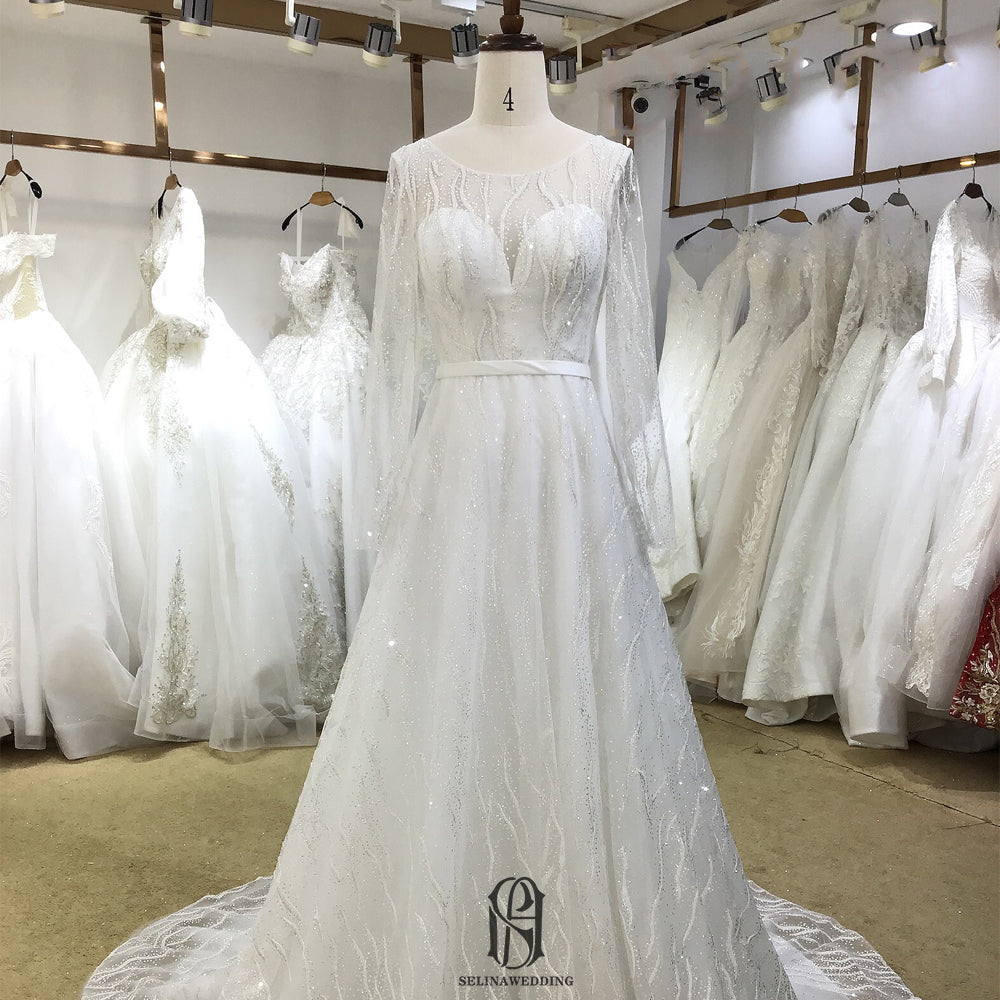 2022 High Quality Wedding Dress Long Sleeves Round-neck selina202206242