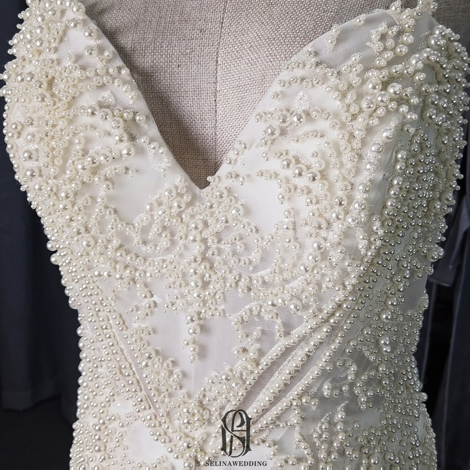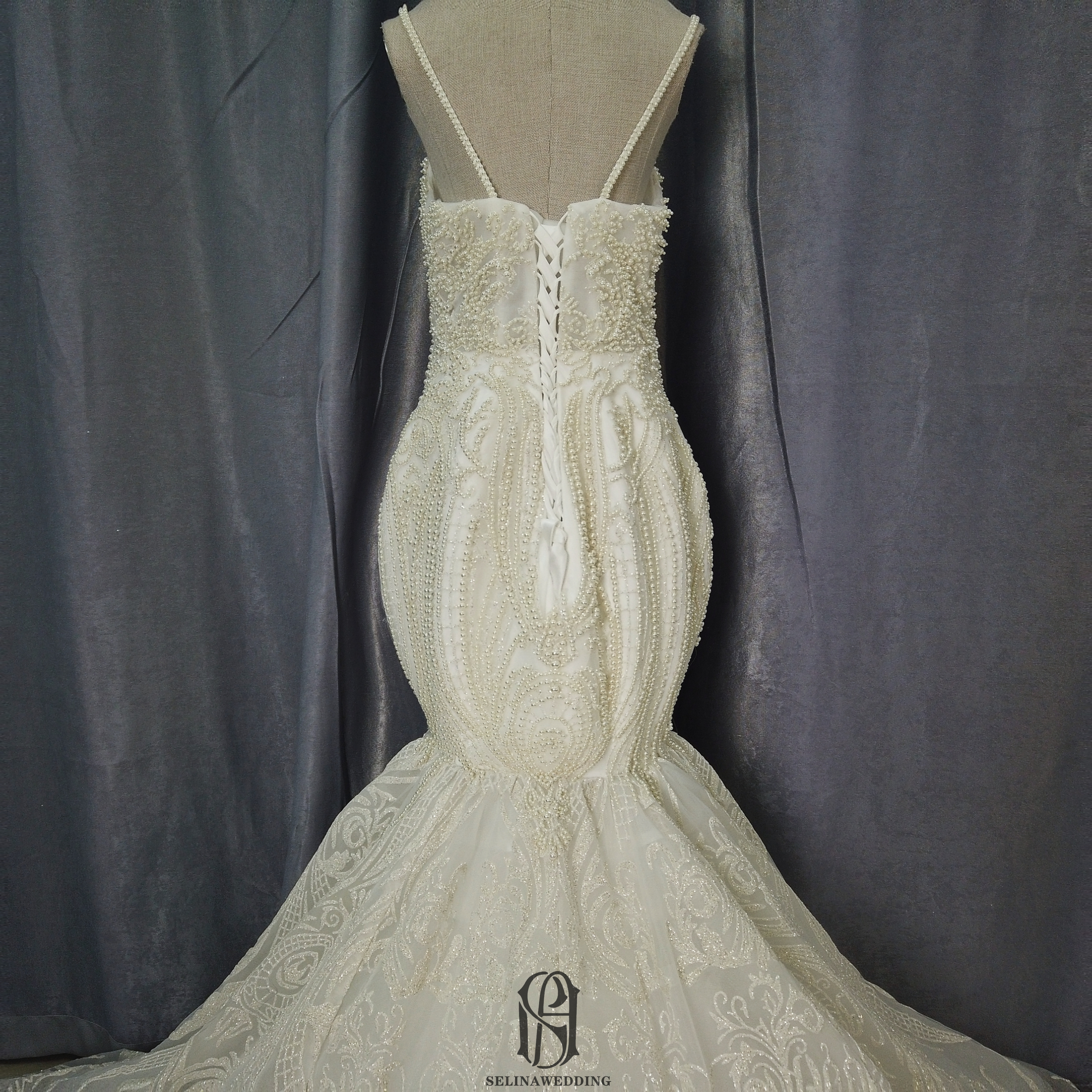 2023 Braces Sleeveless Mermaid Handmade beading Rice white fashion Wedding Dress selina2022080401