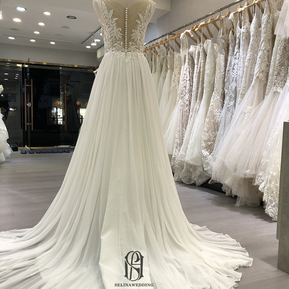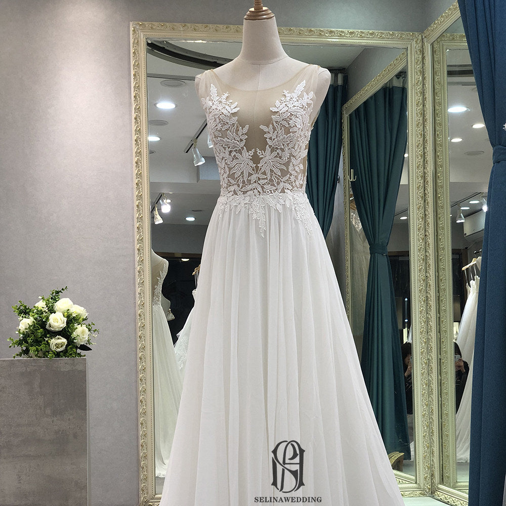 2022 Lace Crew Neck French Wedding Dress selina202252493