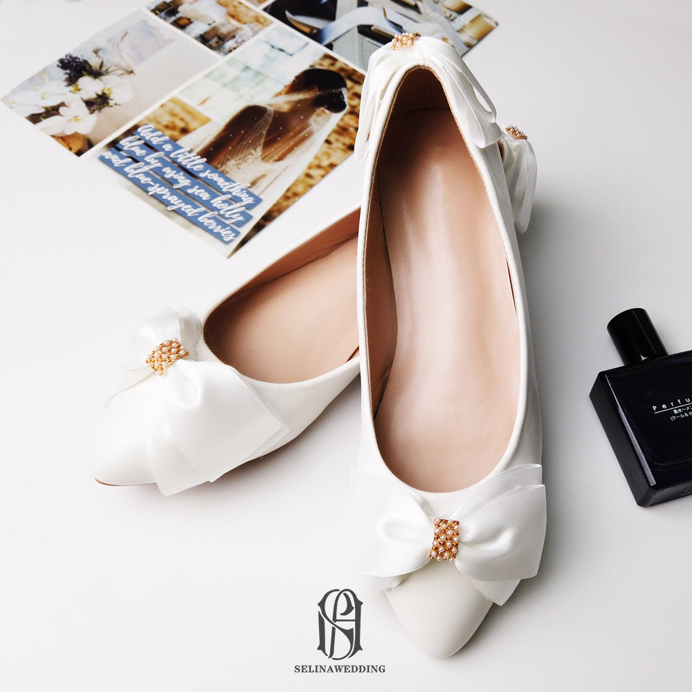 elegant concise white rosette wedding shoes Comfortable Pointed Toe Women's Loafers & Slip-ons Women's Flats Shoes selina20227111