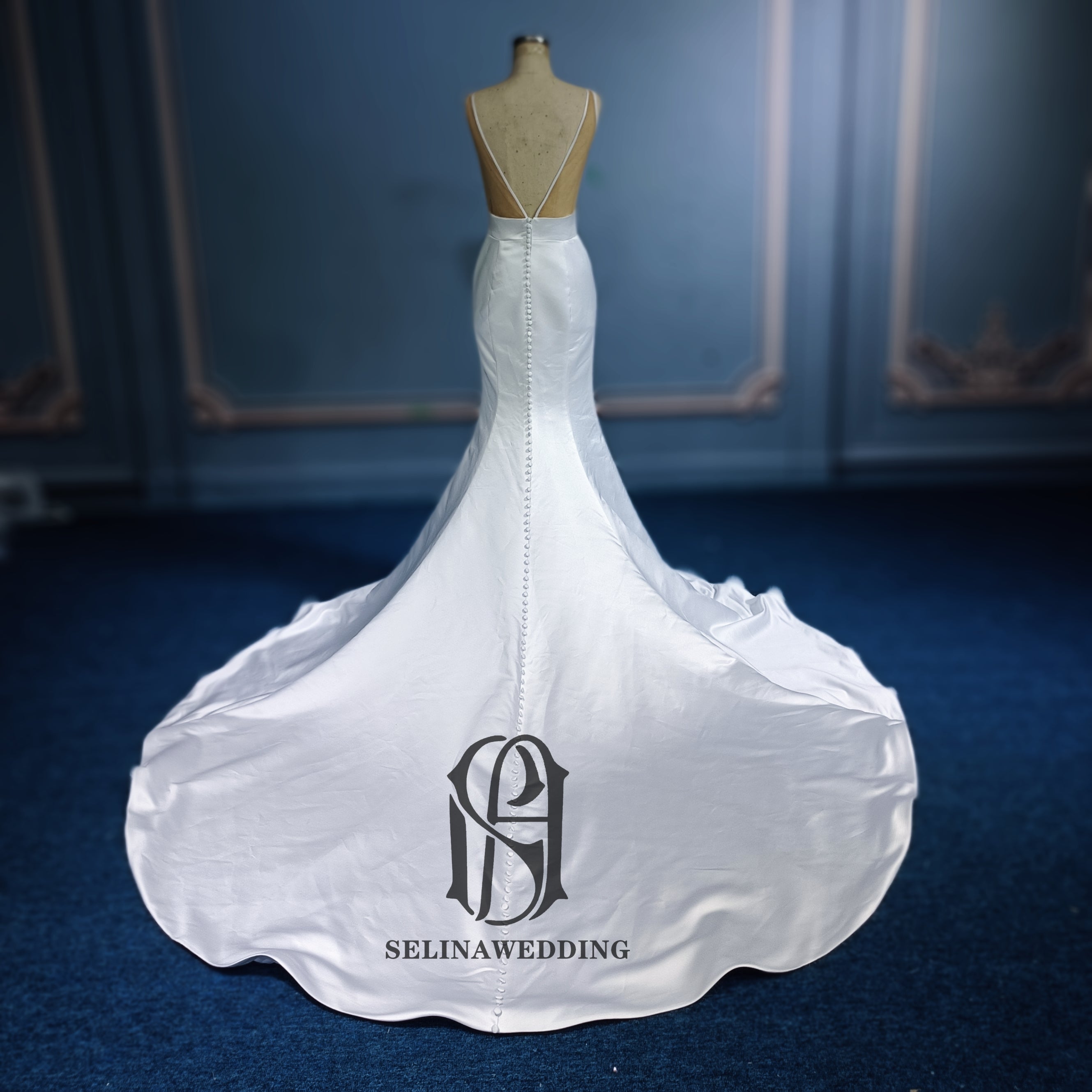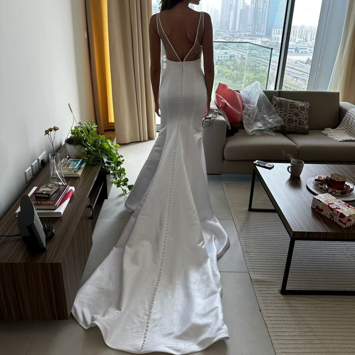 2024Mermaid Wedding Dress, Trumpet Wedding Gown, Fit and Flare Bridal Dress, Crepe Wedding Dress, V-neck Bridal Dress, Satin Wedding Dress ElegantGown 20240812