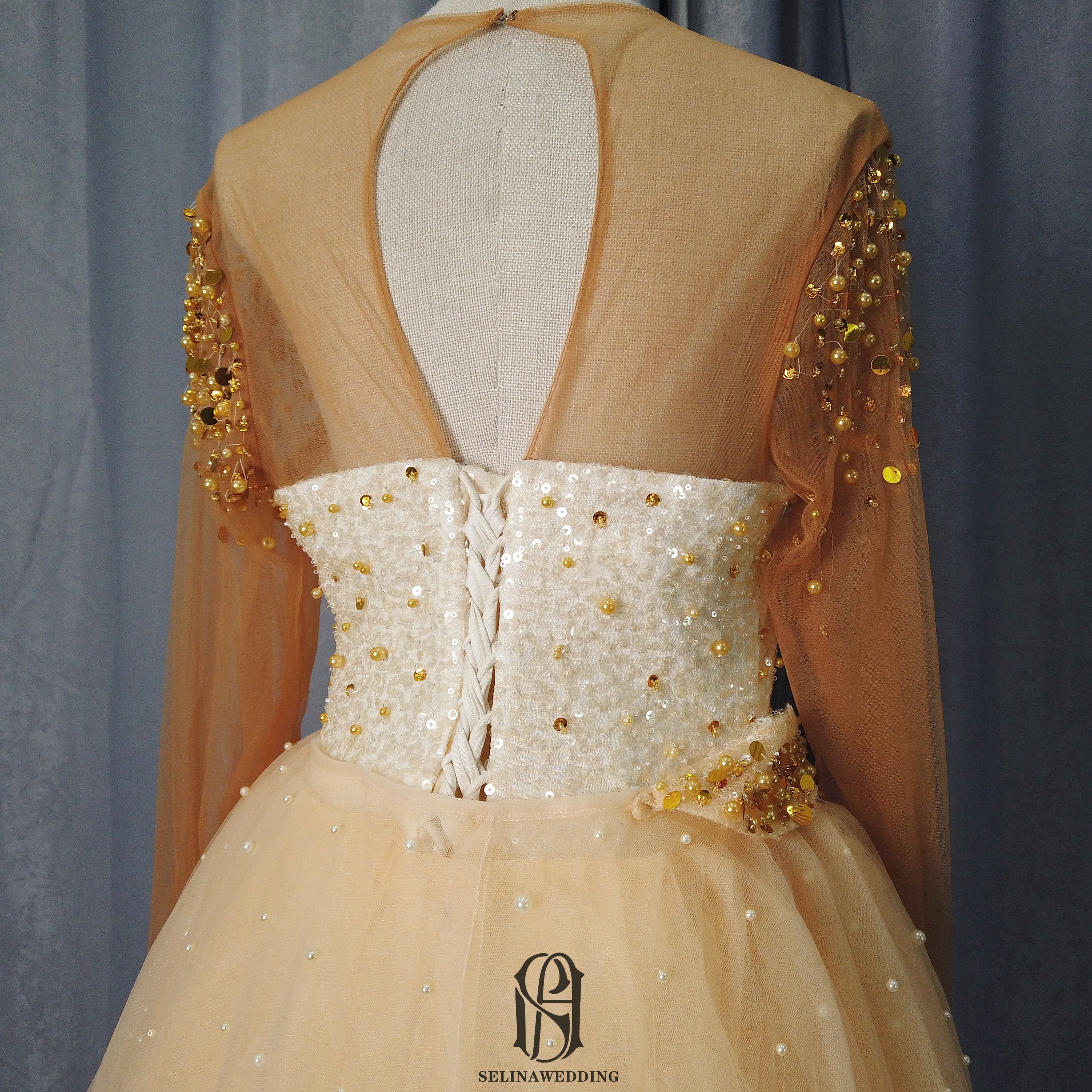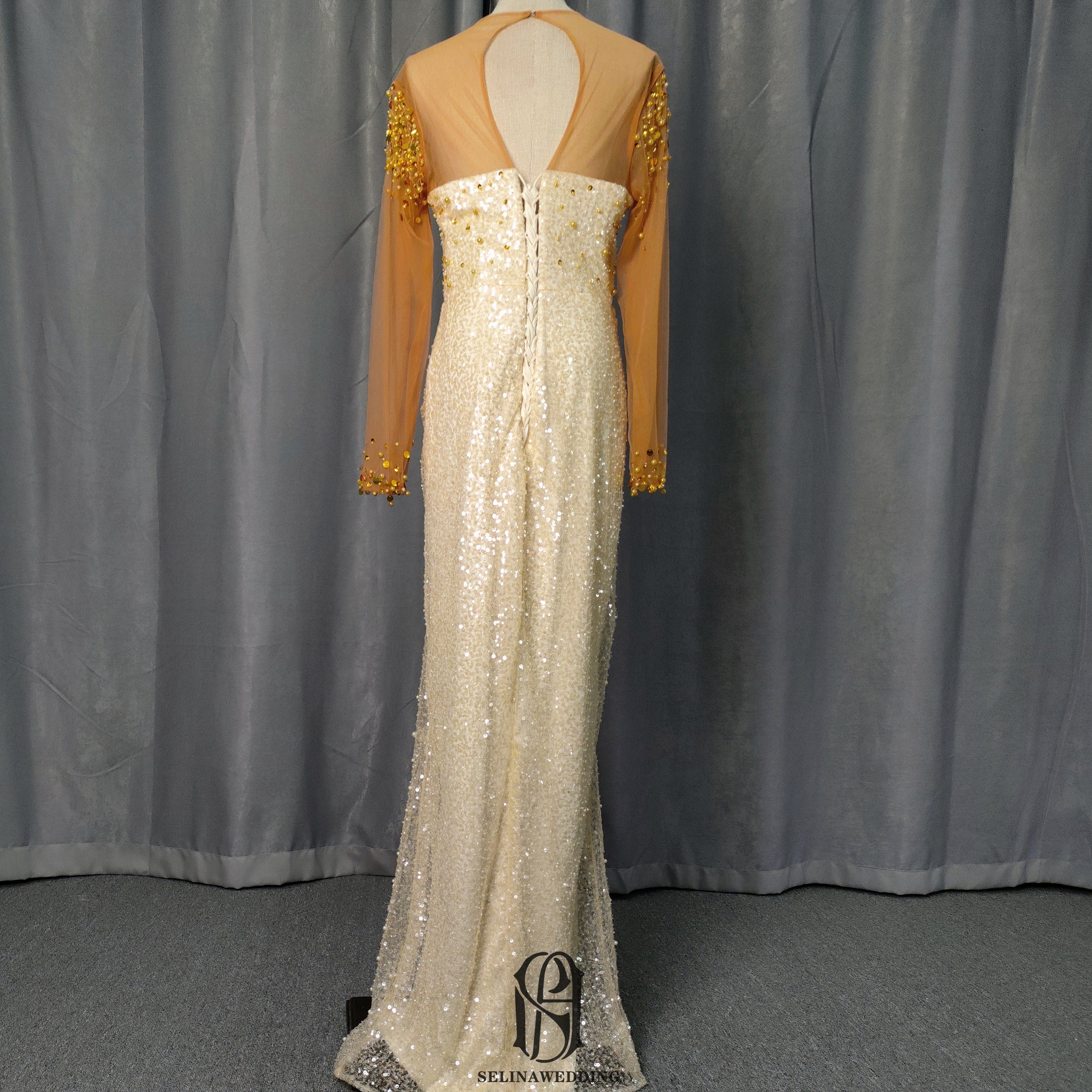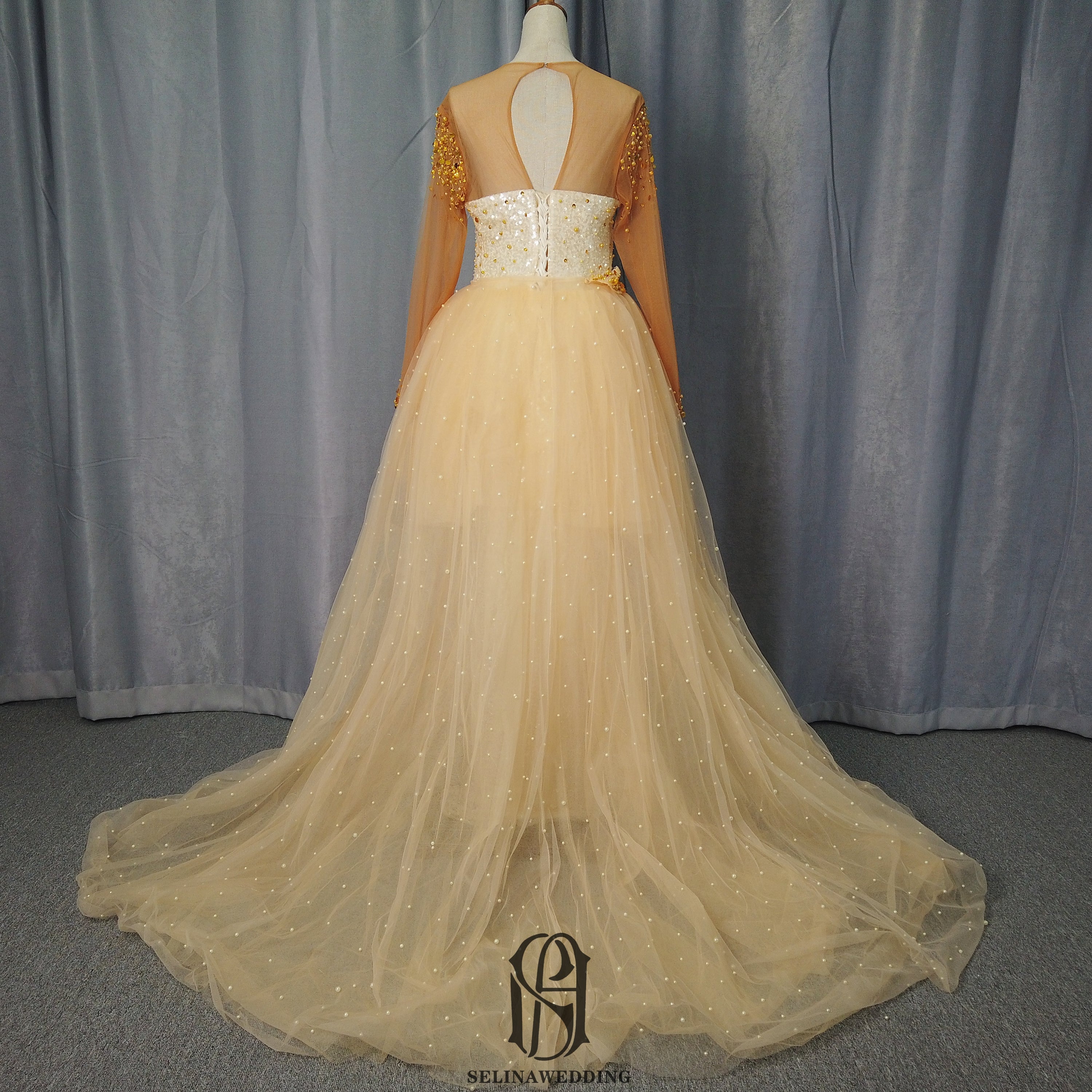 Women's long sleeves Evening dress with gorgeous heart-shaped cutout back&Detachable Train selina2022082618