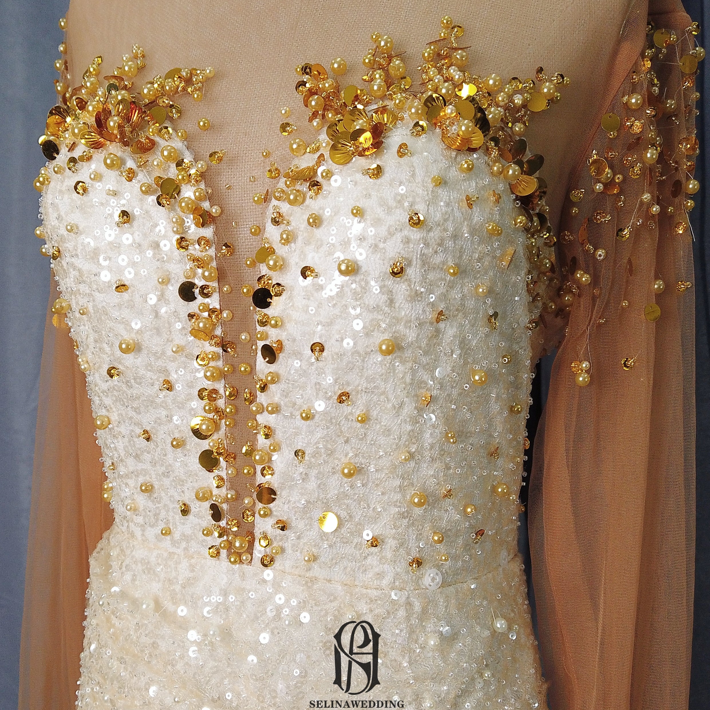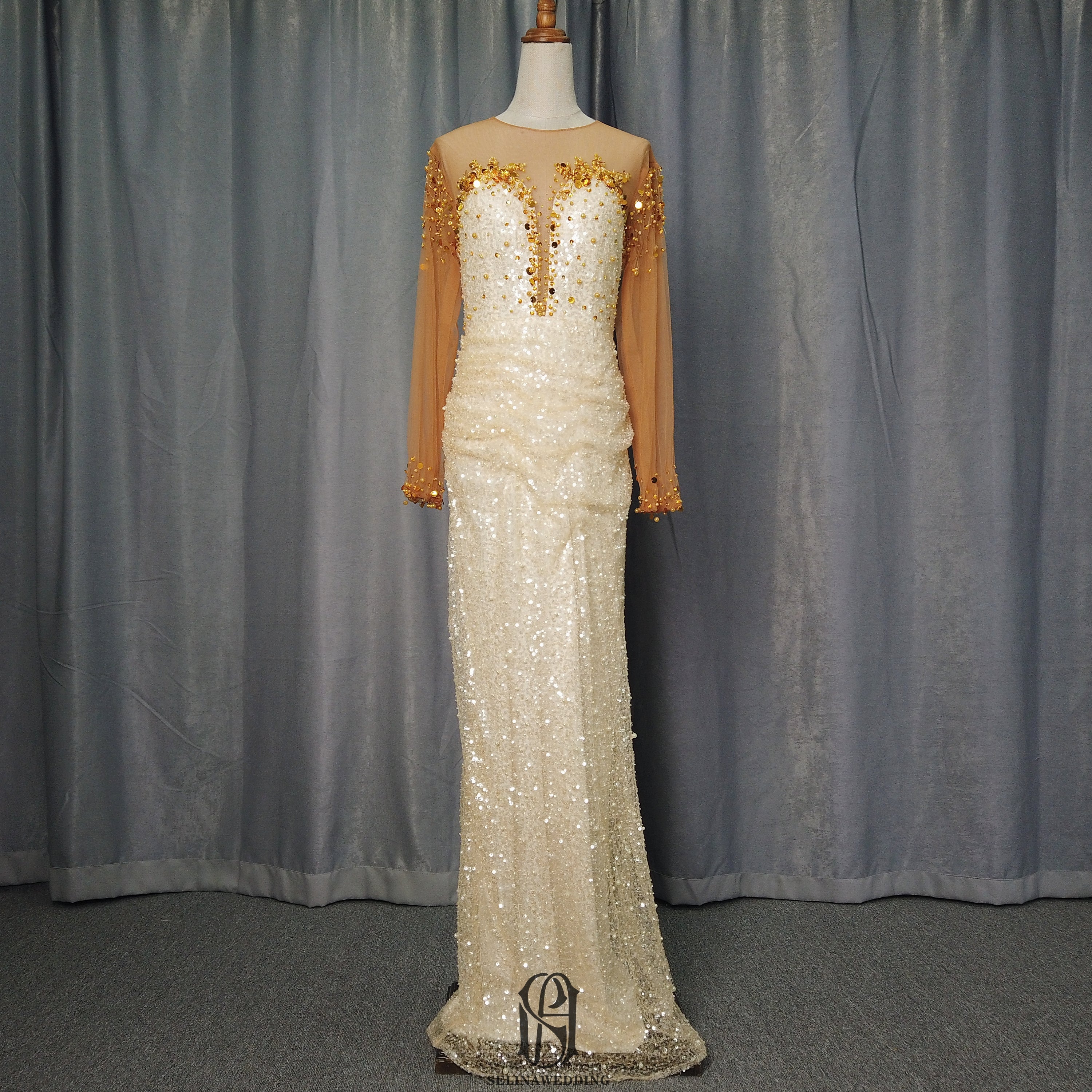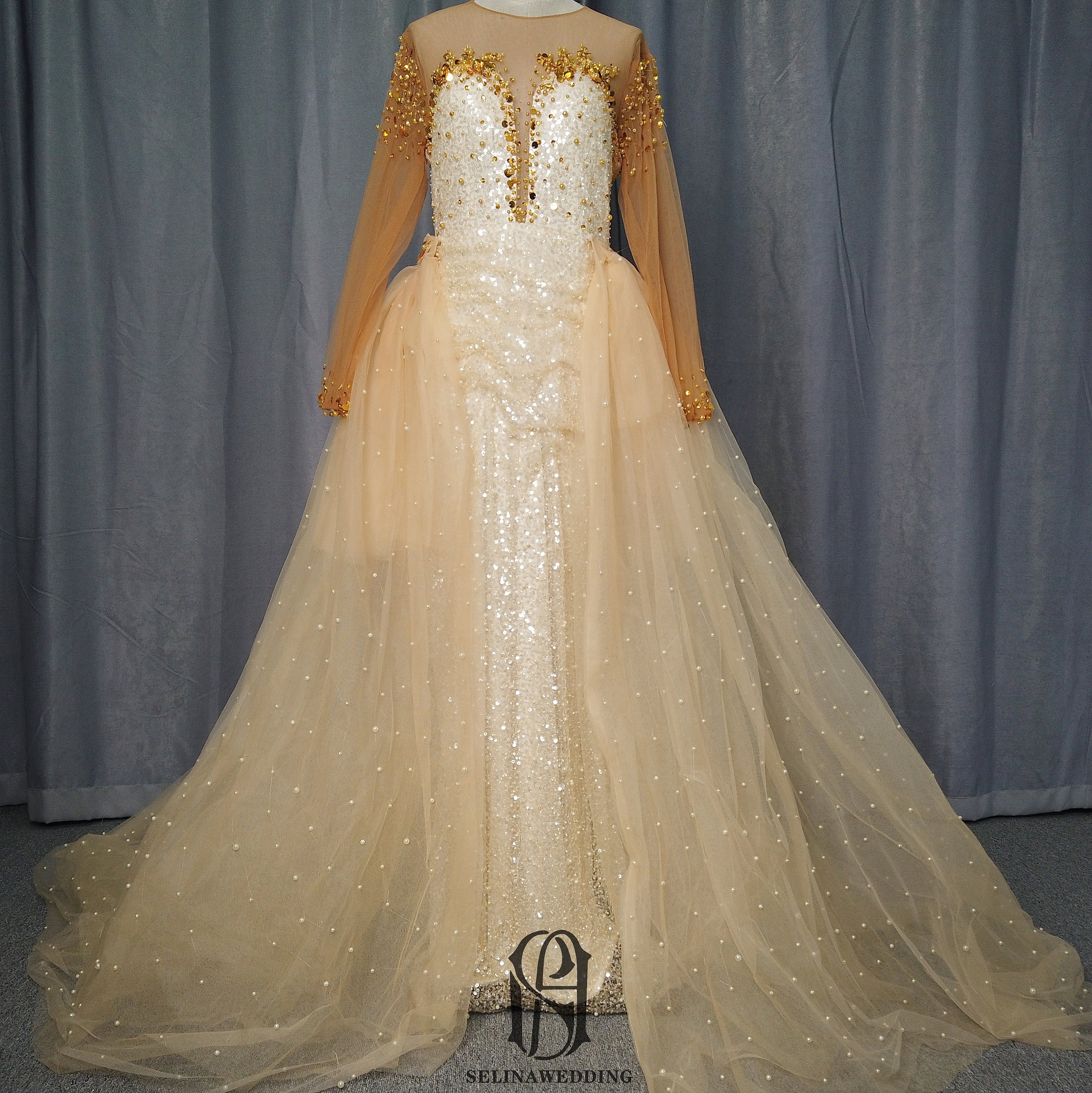 Women's long sleeves Evening dress with gorgeous heart-shaped cutout back&Detachable Train selina2022082618