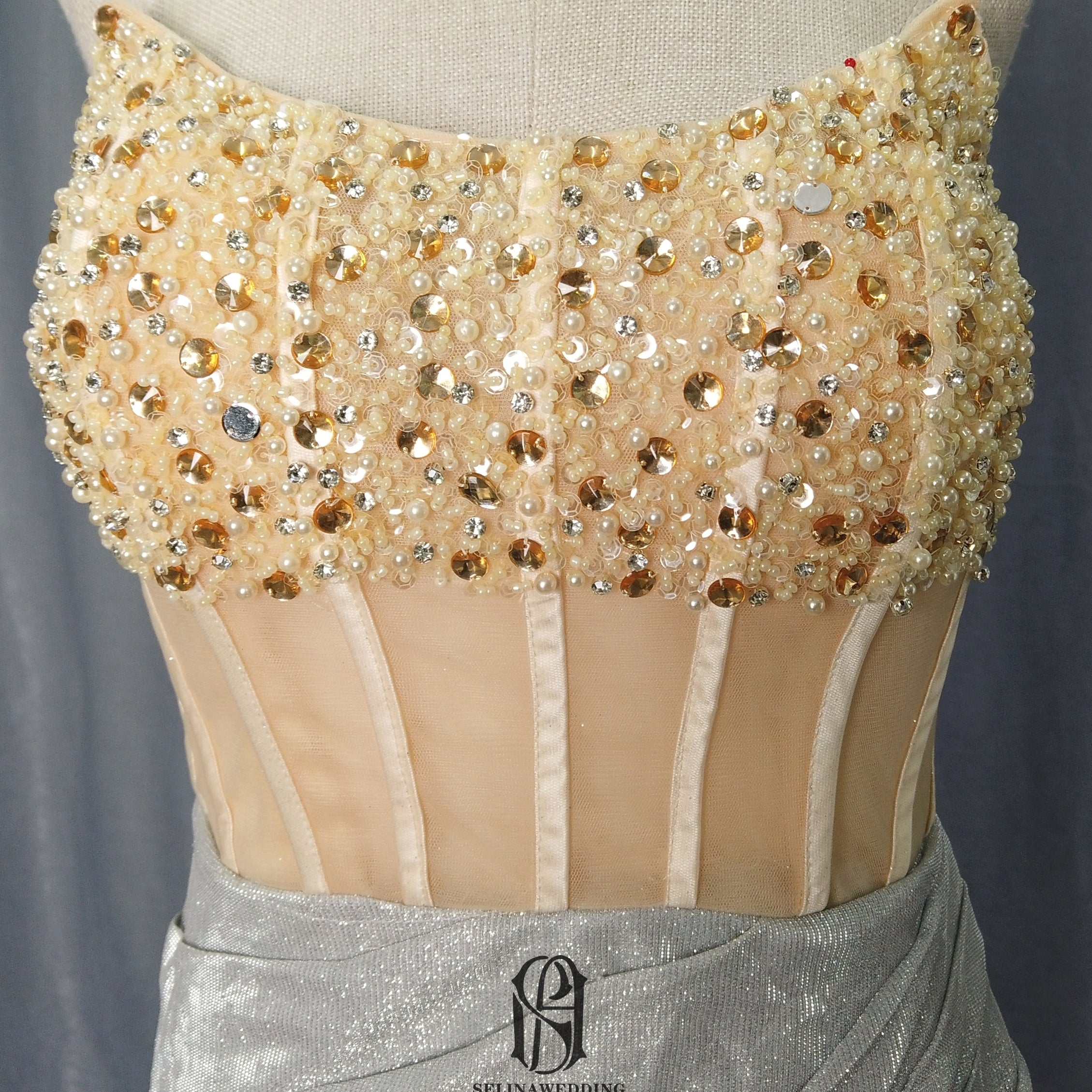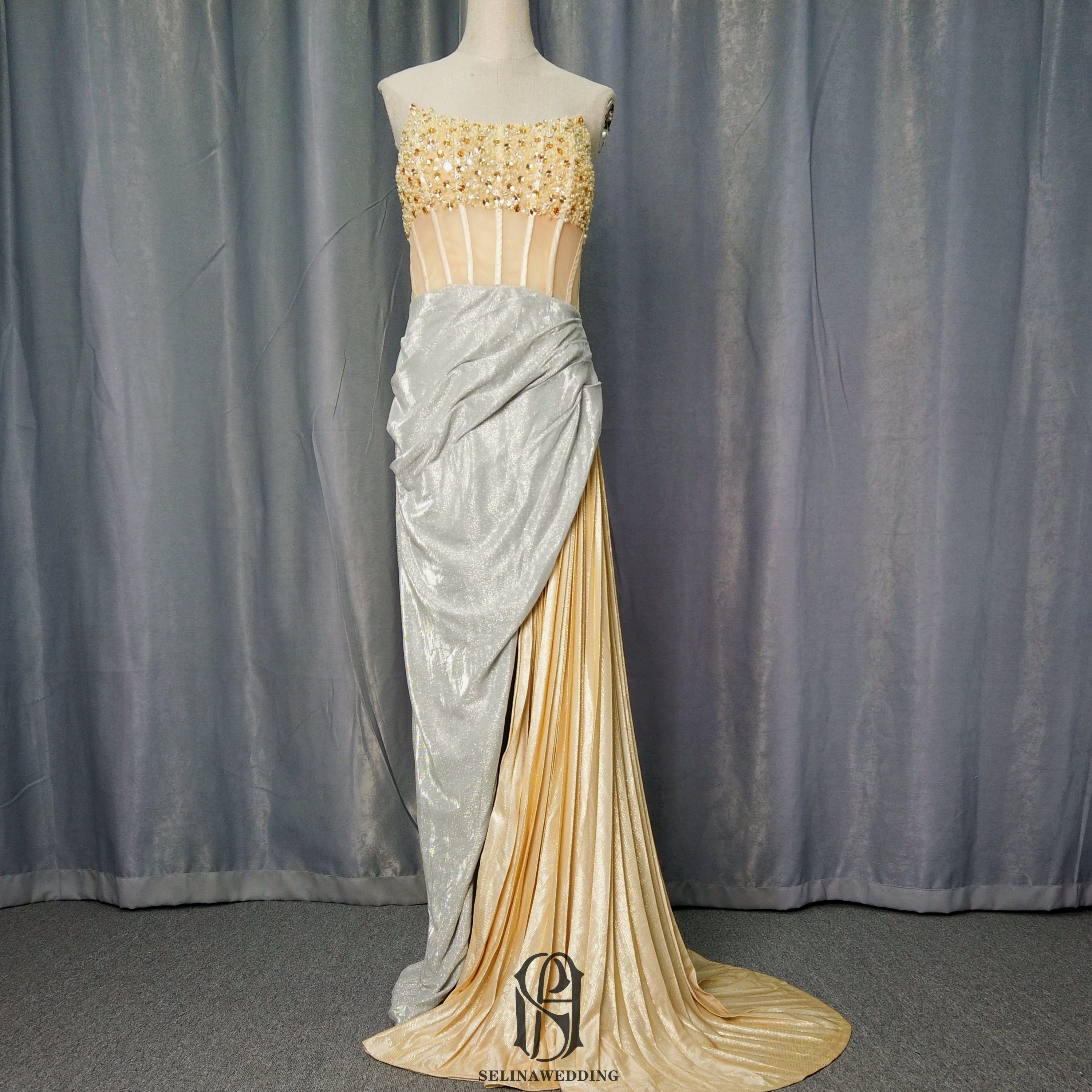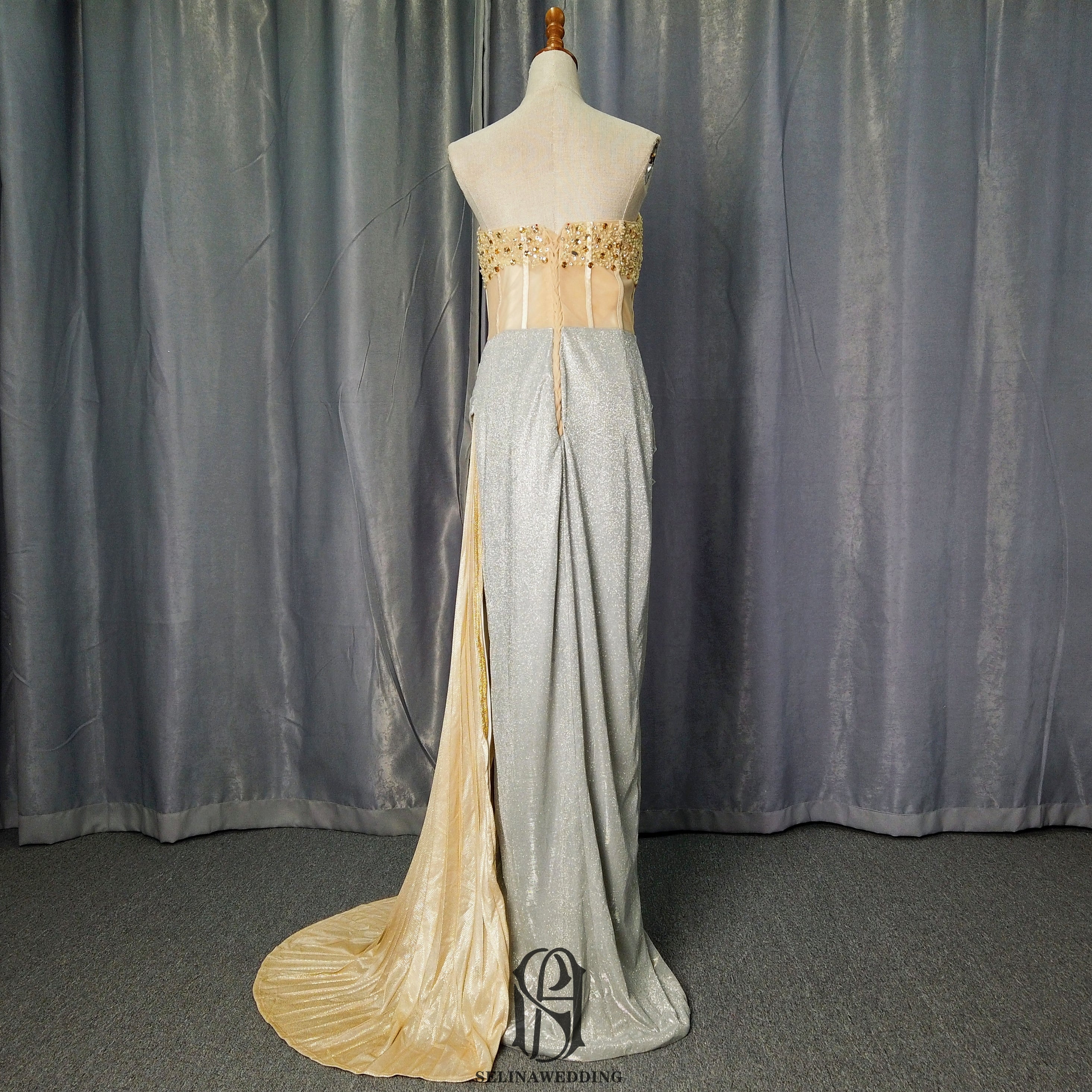Women's Sleeveless Semi-Sweetheart pleated Evening Dress With Slit Party Dress Prom Dress selina2022082614