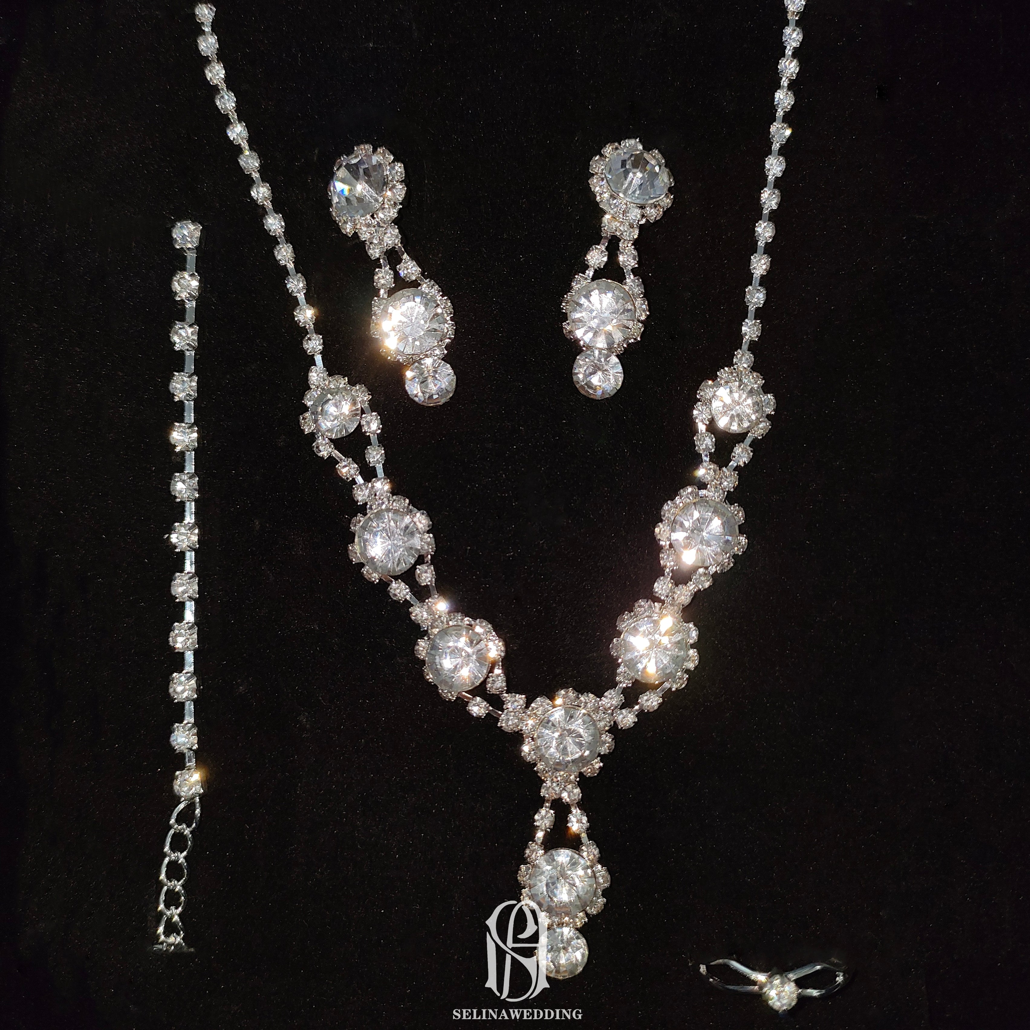 - ✦SPECIAL GIFT✦ - They are nice gift for yourself or your friend who are bride-to-be. Bling silver necklace and earrings make elegant and luxury for you. It must be the perfect gift for your lover, sister, family and friend.